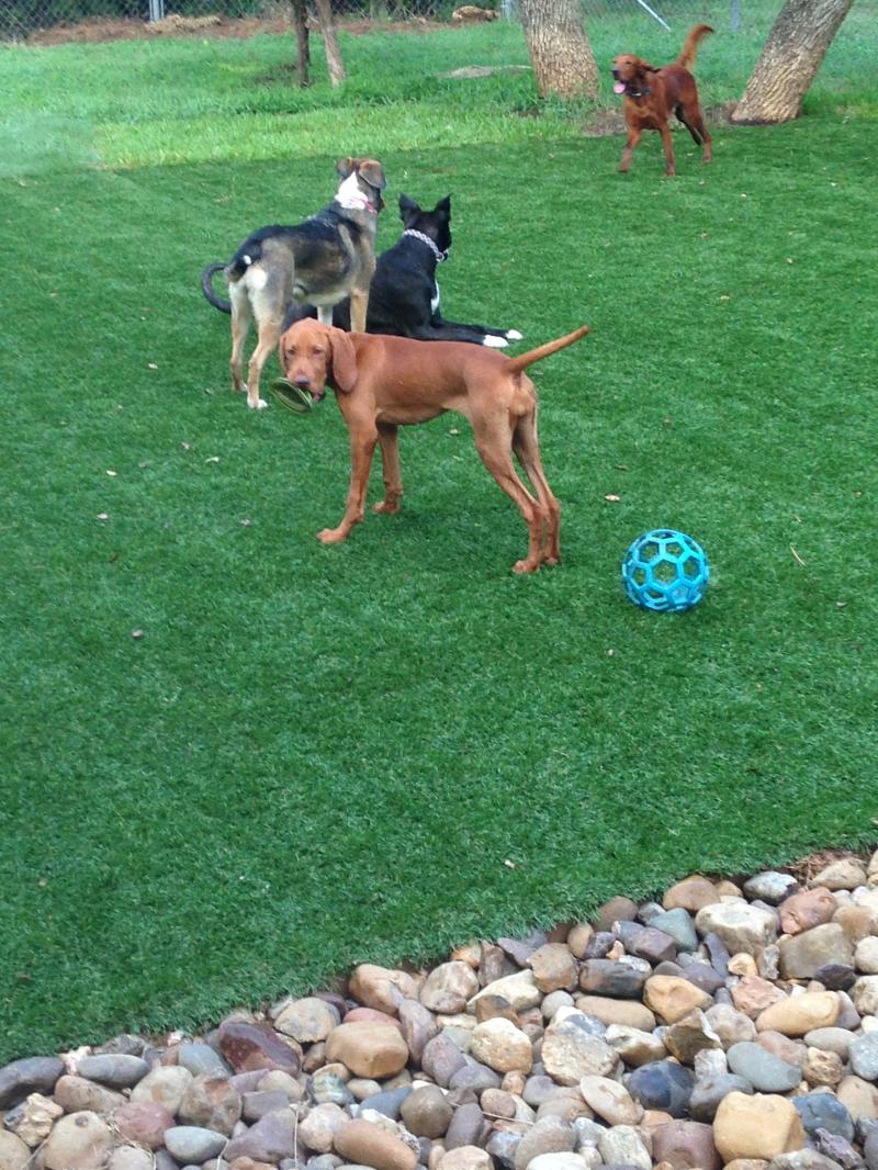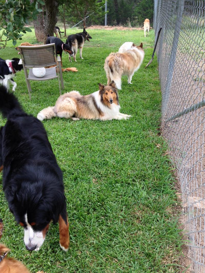 We have two 4200 sq. ft. outdoor fenced areas. This is where the schmuppy's play with their friends, play fetch with us, run around, explore and whatever else their heart desires.